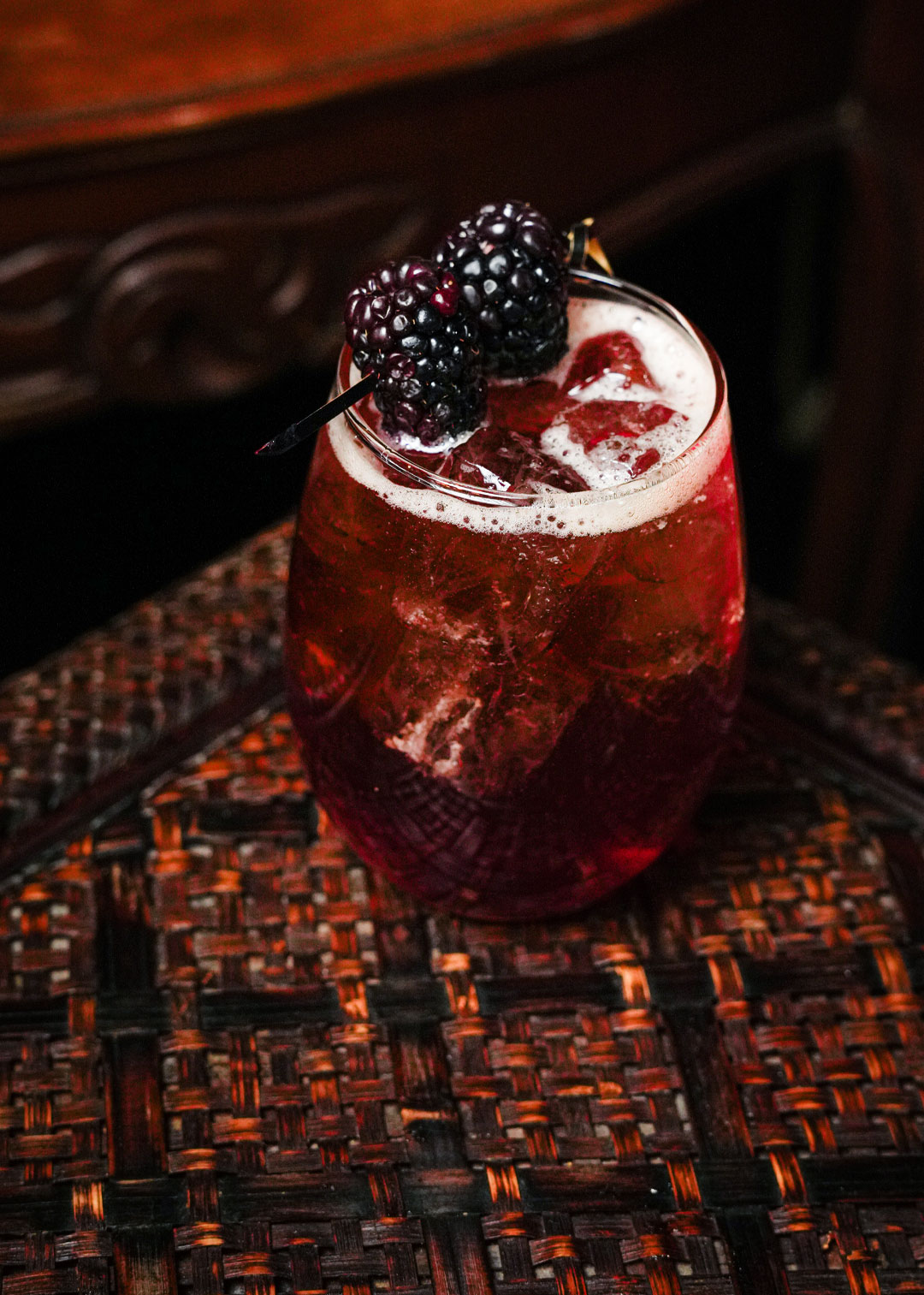 LATE CHECK-OUT18HARBAL, JUICY, REFRESHINGLY DRY. Amaro lucano, dry vermouth, blackberry basil, sparkling wine.